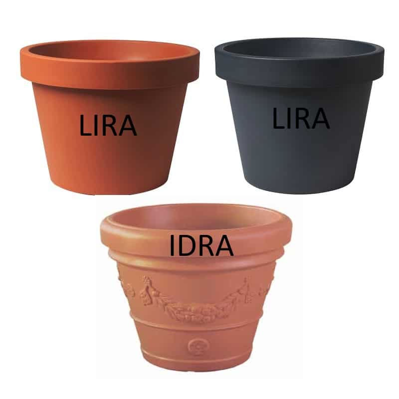 Dimensioner på LIRA plast terracotta krukker med glat side
